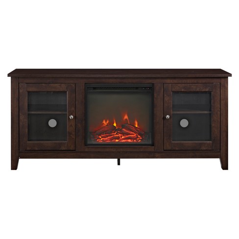 Walker Edison Tall Glass Two Door Soundbar Storage Fireplace Tv Stand For Most Tvs Up To 65 Espresso Bb58fp18hbes Best Buy